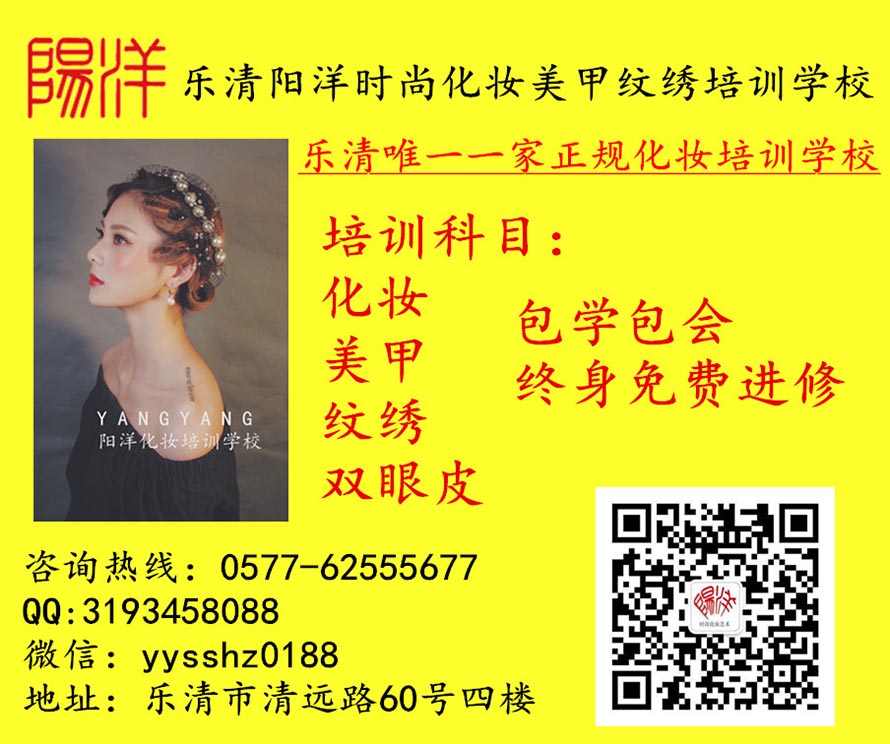 - 樂(lè)清陽(yáng)洋化妝培訓(xùn)學(xué)校喊你來(lái)砸金啦!你還在等什么?