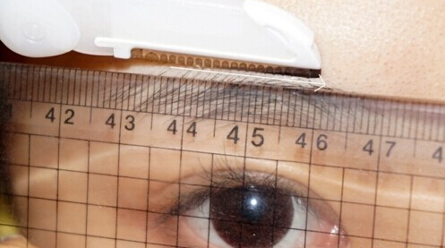 Step 3:把尺子如圖斜著放在眉毛末端,刮去多出來(lái)的眉毛,修出尾部的形狀。