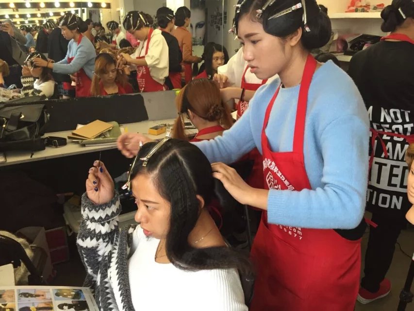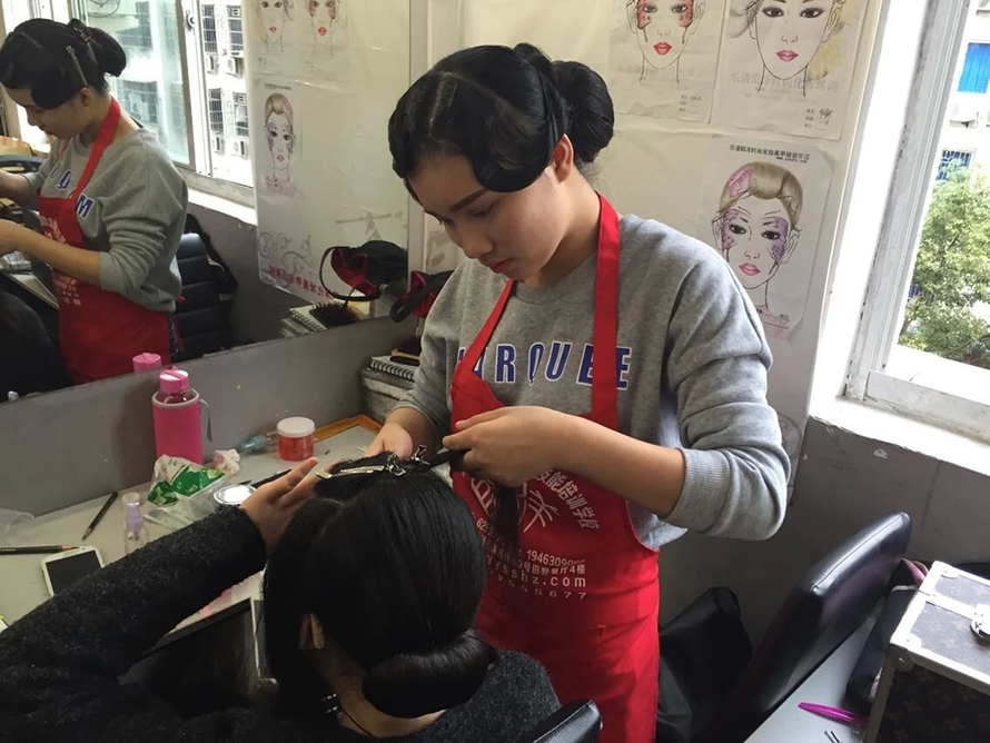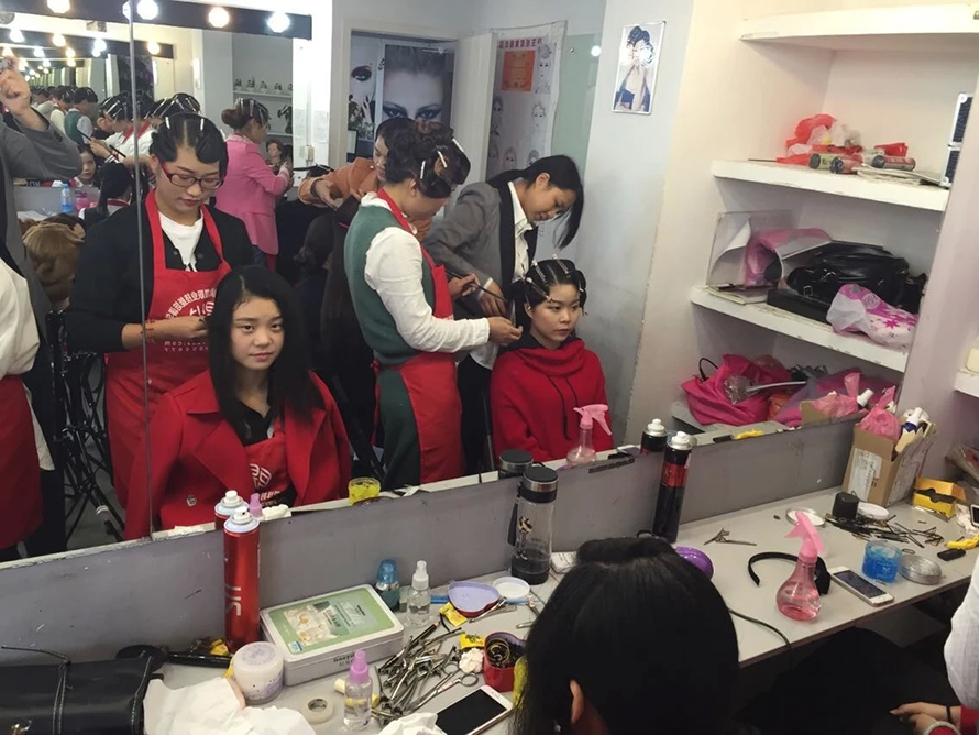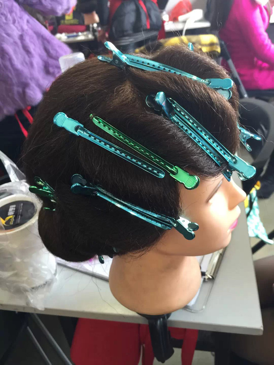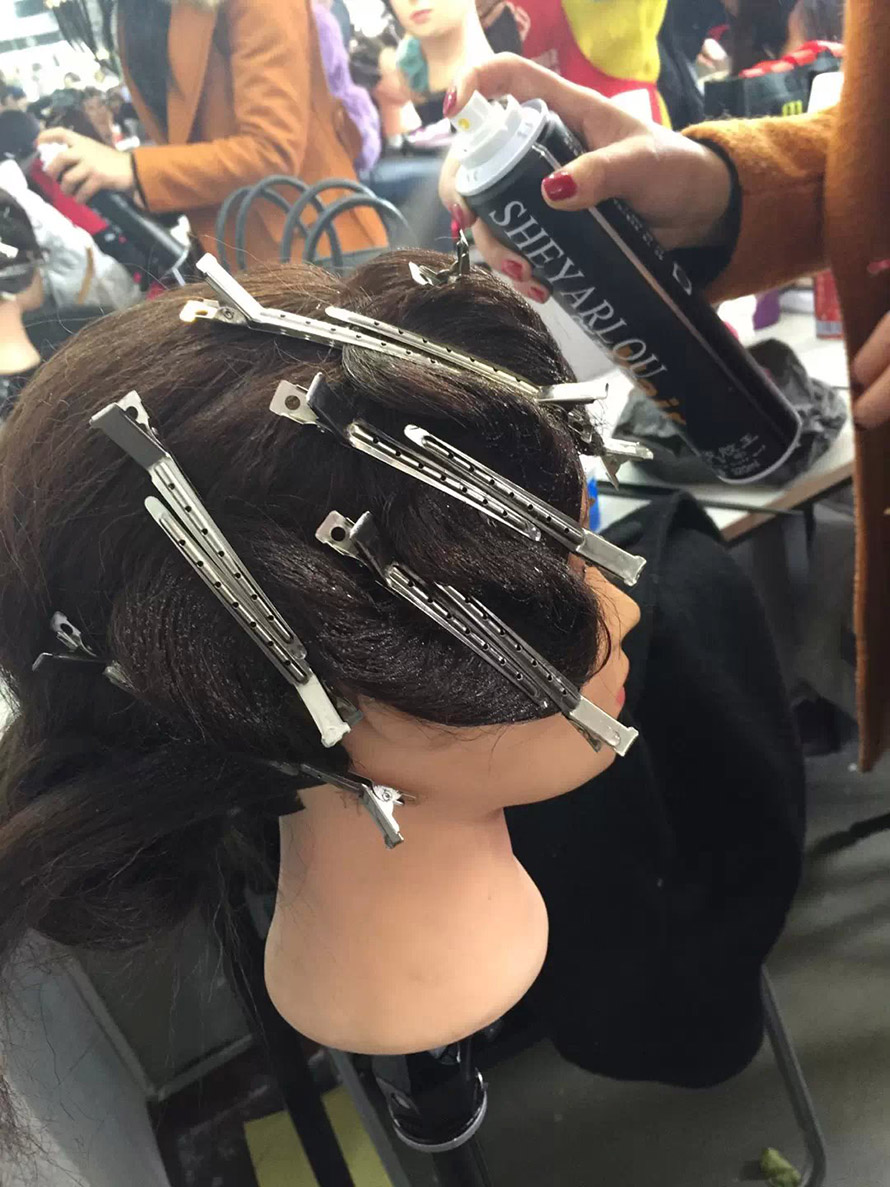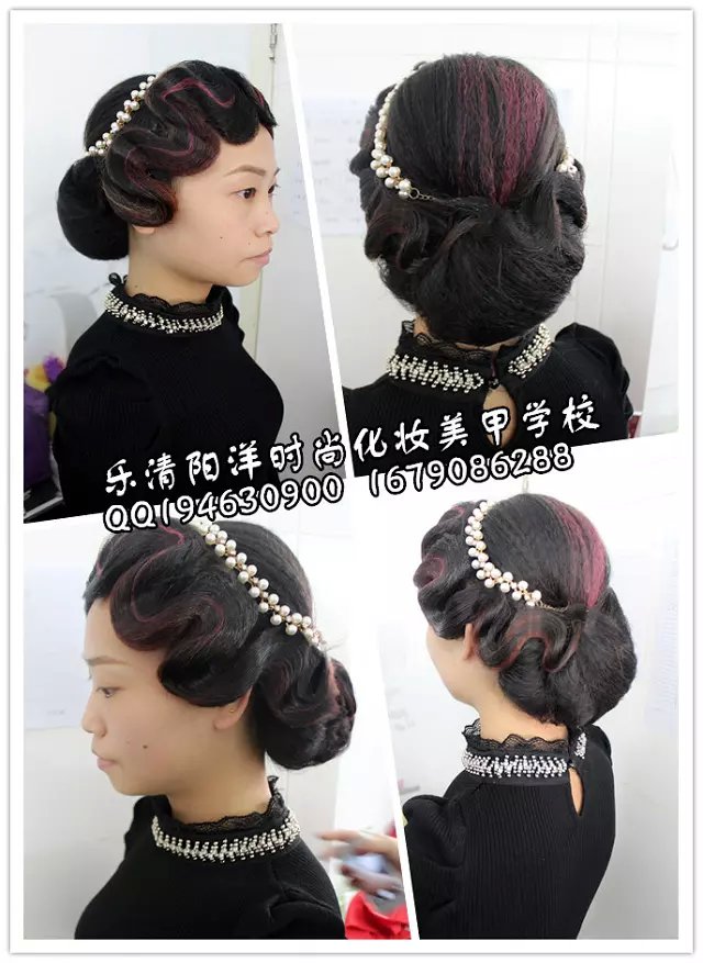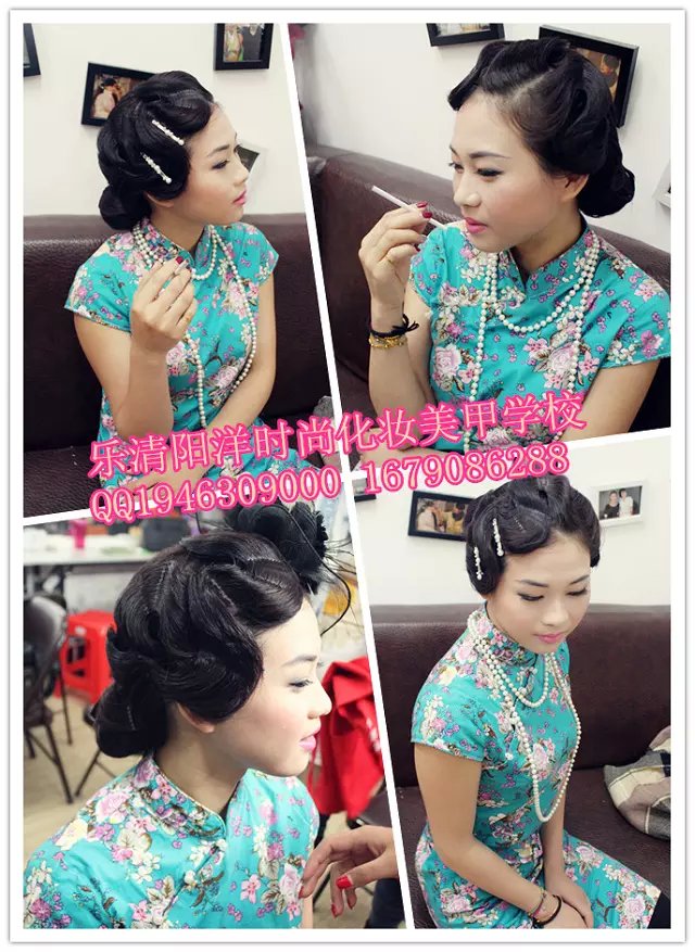 | 民國是西風(fēng)東漸表現(xiàn)最突出的時(shí)期。我們對那個(gè)年代的文化的記憶,最深刻的應(yīng)是服裝造型了。民國時(shí)的旗袍讓我們留戀,而當(dāng)時(shí)的一種發(fā)型也曾風(fēng)風(fēng)靡一時(shí)。你知道是什么嗎?復(fù)古風(fēng)靡浪潮高漲的今天,怎么能不跟樂清陽洋時(shí)尚化妝美甲學(xué)校學(xué)一款手推波紋發(fā)型呢,準(zhǔn)備艷驚四座吧。 我們來到2015年第六屆學(xué)生的盤發(fā)課堂上,學(xué)生們此刻正在為這次的造型忙碌著。