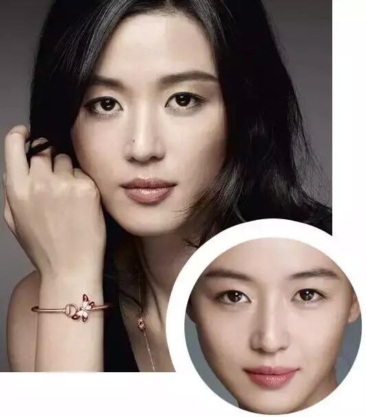 全智賢的眉毛算是清晰干凈的了,眉頭處也依然做了“高斯模糊”的處理,達到美麗自然的效果。