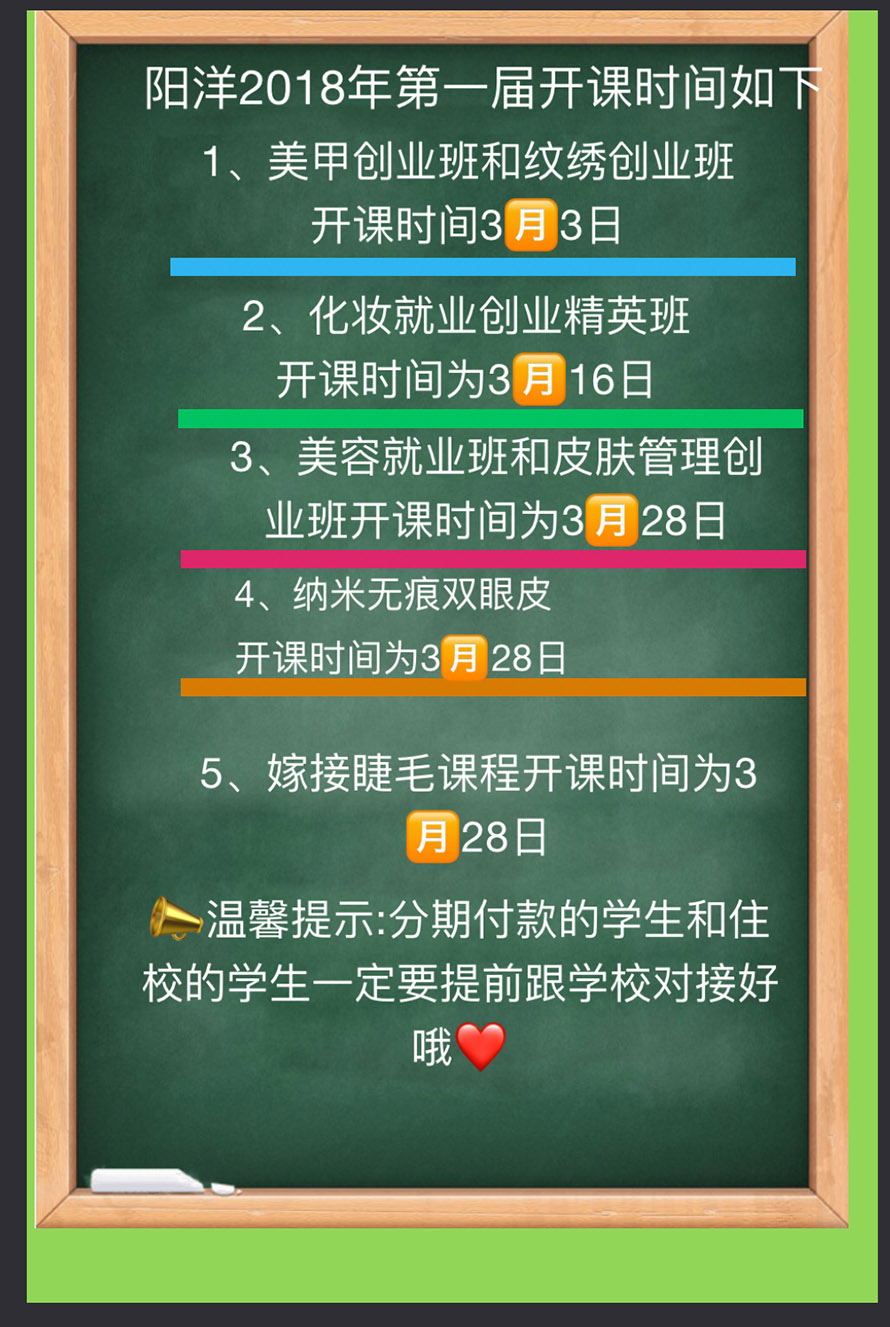 當(dāng)前位置:樂(lè)清市陽(yáng)洋職業(yè)技能培訓(xùn)學(xué)校 » 學(xué)校新聞2018年陽(yáng)洋時(shí)尚化妝職業(yè)技能培訓(xùn)學(xué)校第一屆新學(xué)生開(kāi)課時(shí)間表發(fā)布時(shí)間:2018-2-17 18:01:43 瀏覽次數(shù):1968 |