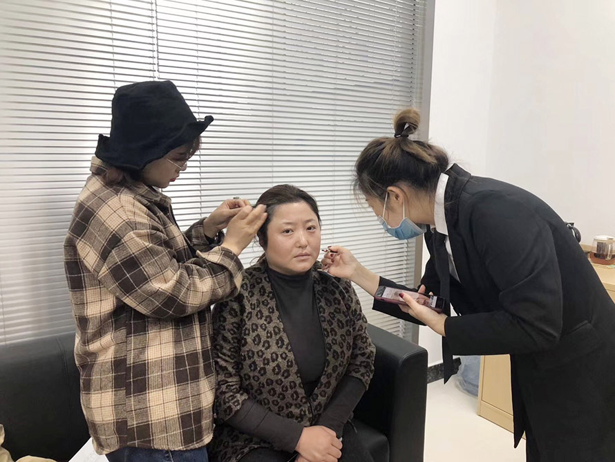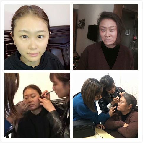 對于在學(xué)習(xí)的化妝師而言,每一次實際操作的機會都值得珍惜,因為正是一次次的動手去“做”,去“完成”,讓自己的化妝技術(shù)得到積累和提升。對于還未出師的學(xué)員們來說,每一次實習(xí)的機會更是難能可貴。 ···· 11月下旬,某劇組在樂清虹橋取景拍攝微電影,樂清陽洋化妝美甲紋繡學(xué)校,楊洋校長、帶領(lǐng)國際化妝班的學(xué)生、糖糖、雪麗、程亞 、 群英、以及和王老師 小喬老師 菲菲老師 安迪老師前往劇組參與化妝工作、該劇組的演員大多數(shù)是20出頭的年輕人,扮演59歲左右年齡階段的老頭子和老太太的角色,同學(xué)們學(xué)習(xí)了老師平時在課堂上講的老年妝的畫法可以利用起來。