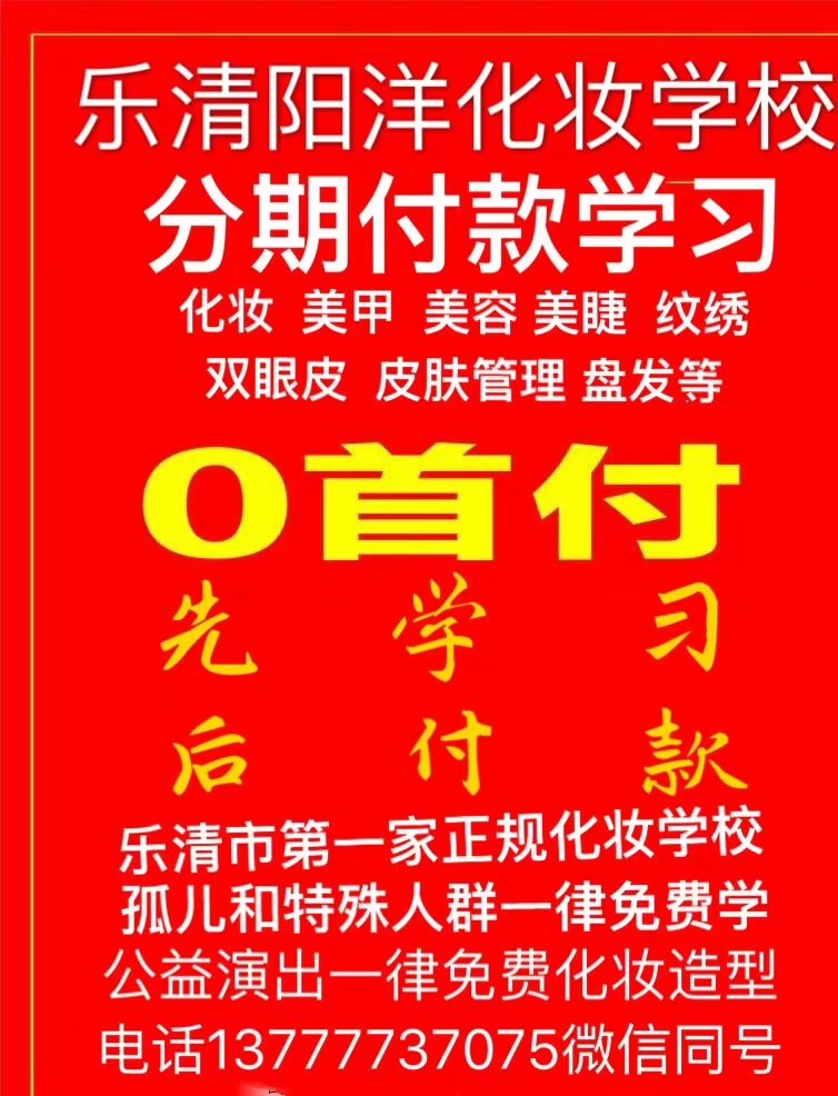 陽洋化妝美甲紋繡技能培訓(xùn)學(xué)校 七大專業(yè)王牌課程,化妝,發(fā)型,紋繡,雙眼 皮,美甲美睫美容。火熱報名中...... 可分期付款,0首付,學(xué)習(xí)沒壓力 總校報名熱線:0577-62555677;13777737075 微信:yysshz0188 QQ:1679086288;3193458088 總校地址:樂清市清遠路60號4樓-6樓 學(xué)校網(wǎng)址:www.oqbdzli.cn 柳市分校報名熱線:0577-62556767 13777737075 微信:lsyyhz55 地址:柳市鎮(zhèn)柳江北路1號 四樓聯(lián)盈辦公家具專賣樓上(夏威夷大酒店對面 中國銀行旁邊) 學(xué)校網(wǎng)址:www.oqbdzli.cn