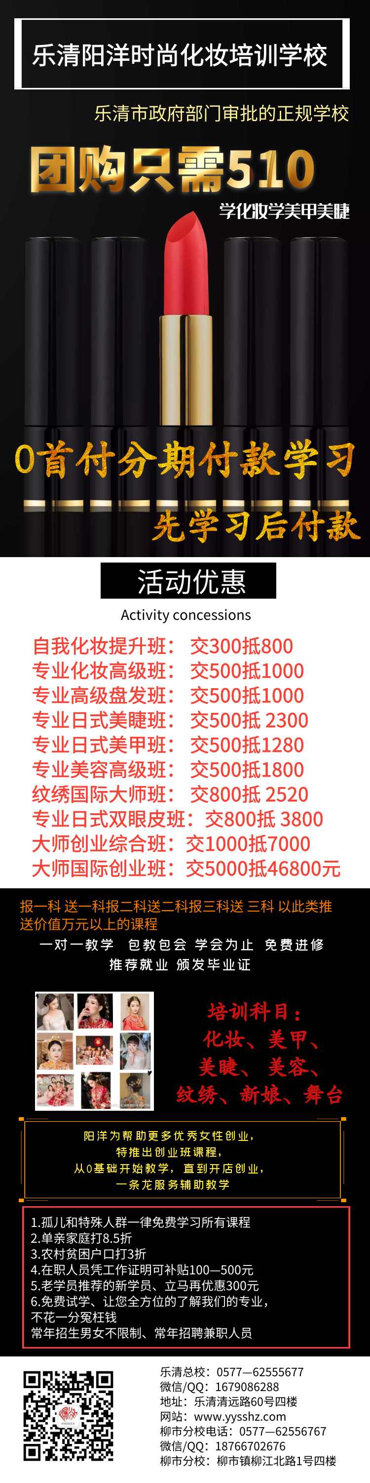 - 樂清陽洋化妝培訓學校喊你來砸金啦!你還在等什么?