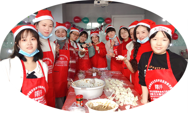 活動(dòng)的重點(diǎn)來(lái)啦!我們大家圍在一起,有說(shuō)有笑的包餃子咯~還有同學(xué)說(shuō)來(lái)個(gè)包餃子競(jìng)賽,看看誰(shuí)在規(guī)定時(shí)間包的又快又多。活動(dòng)現(xiàn)場(chǎng)場(chǎng)面熱鬧,氣氛活躍,大家真的是都特別開(kāi)心。
