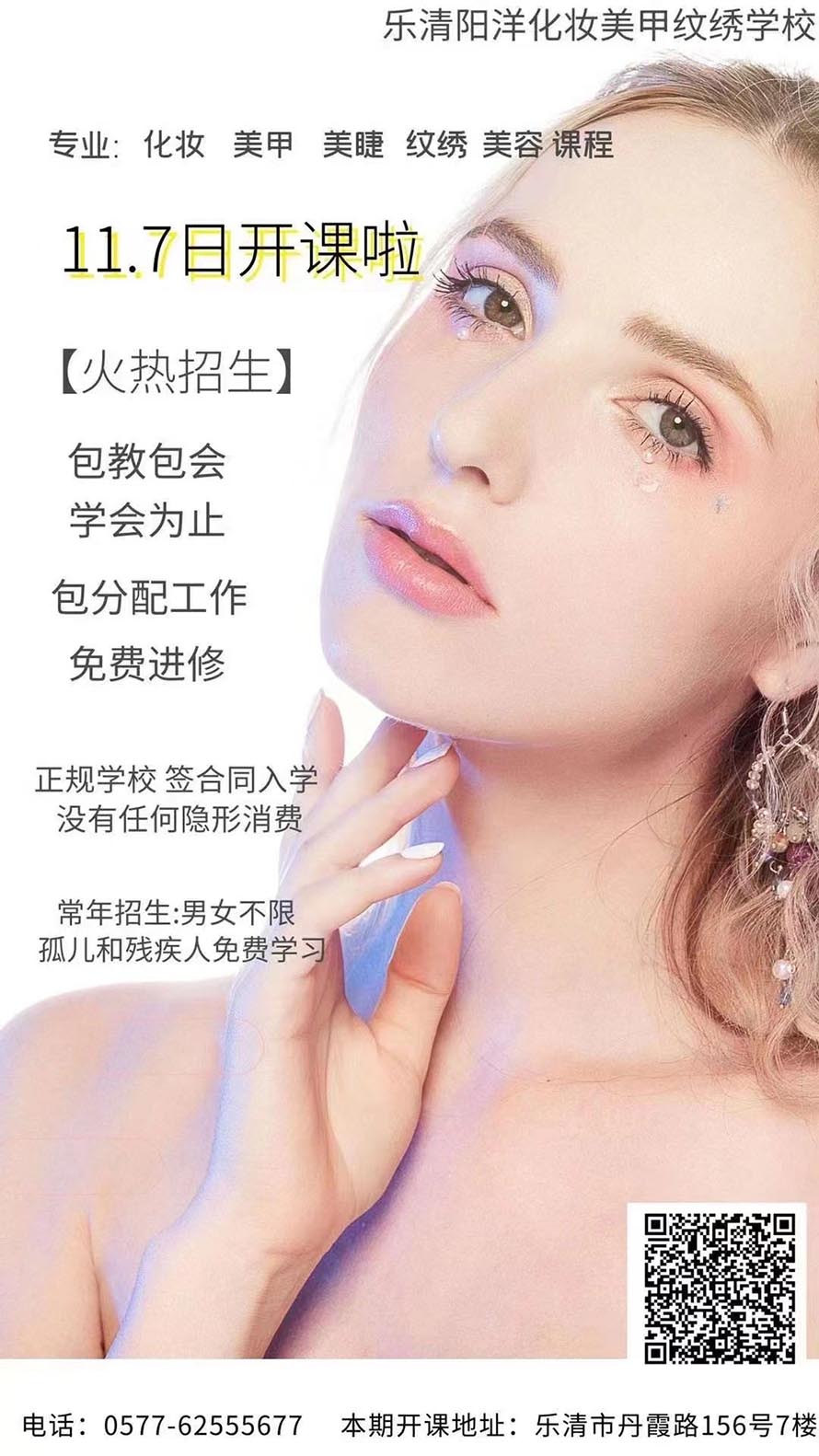 當(dāng)前位置:樂清市陽洋職業(yè)技能培訓(xùn)學(xué)校 » 學(xué)校新聞2021年11月開課時(shí)間表#樂清哪里有學(xué)化妝美甲紋繡美睫美容#溫州學(xué)化妝發(fā)布時(shí)間:2021-11-5 9:33:48 瀏覽次數(shù):1982 |