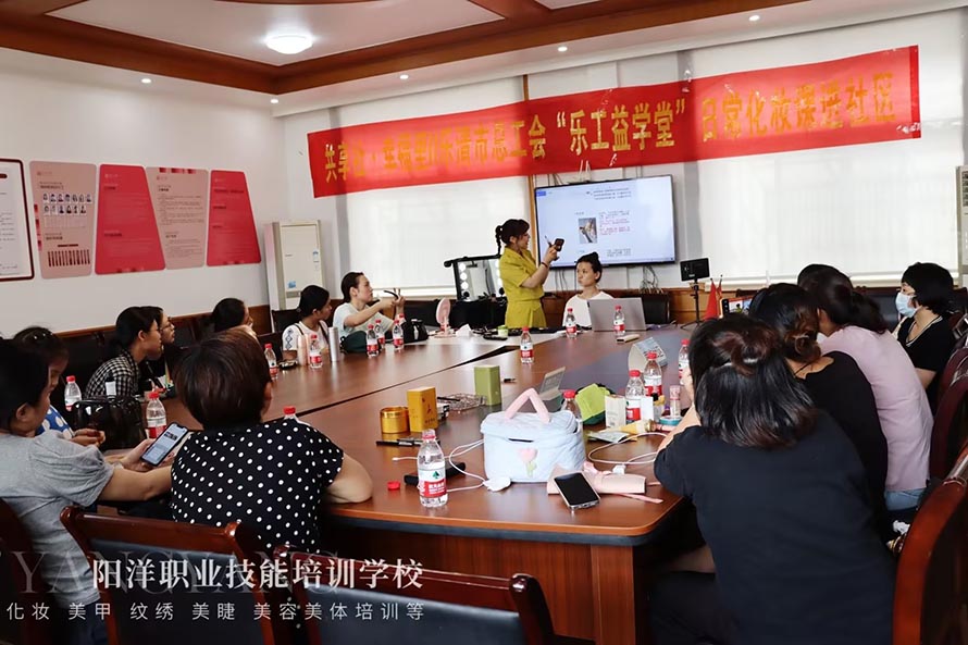 陽洋時尚化妝培訓(xùn)學(xué)校創(chuàng)始人受邀總工會舉辦的“樂工益學(xué)堂” 日常化妝課走進(jìn)社區(qū) 。本次來到虹橋社區(qū)舉辦化妝講座舉辦了一場針對虹橋社區(qū)人員的化妝技巧座談會。陽洋時尚化妝培訓(xùn)學(xué)校創(chuàng)始人楊娜娜老師參加了本次化妝講座。擔(dān)任化妝主講老師。 首先,楊老師先給大家講解化妝的工具,化妝的流程,還有眉毛的理論知識。讓大家在最短的時間學(xué)到更多的知識。