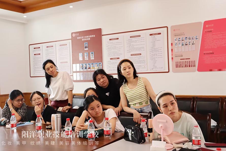 接下來同學(xué)們開始給自己畫,練習(xí)花絮 楊老師再一對一的修改學(xué)員的妝容