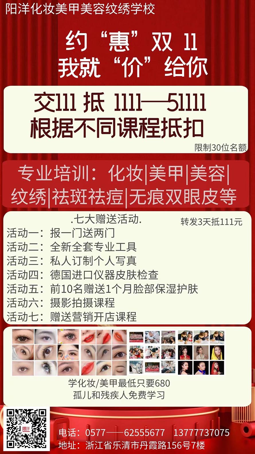- 樂清陽洋化妝培訓學校喊你來砸金啦!你還在等什么?