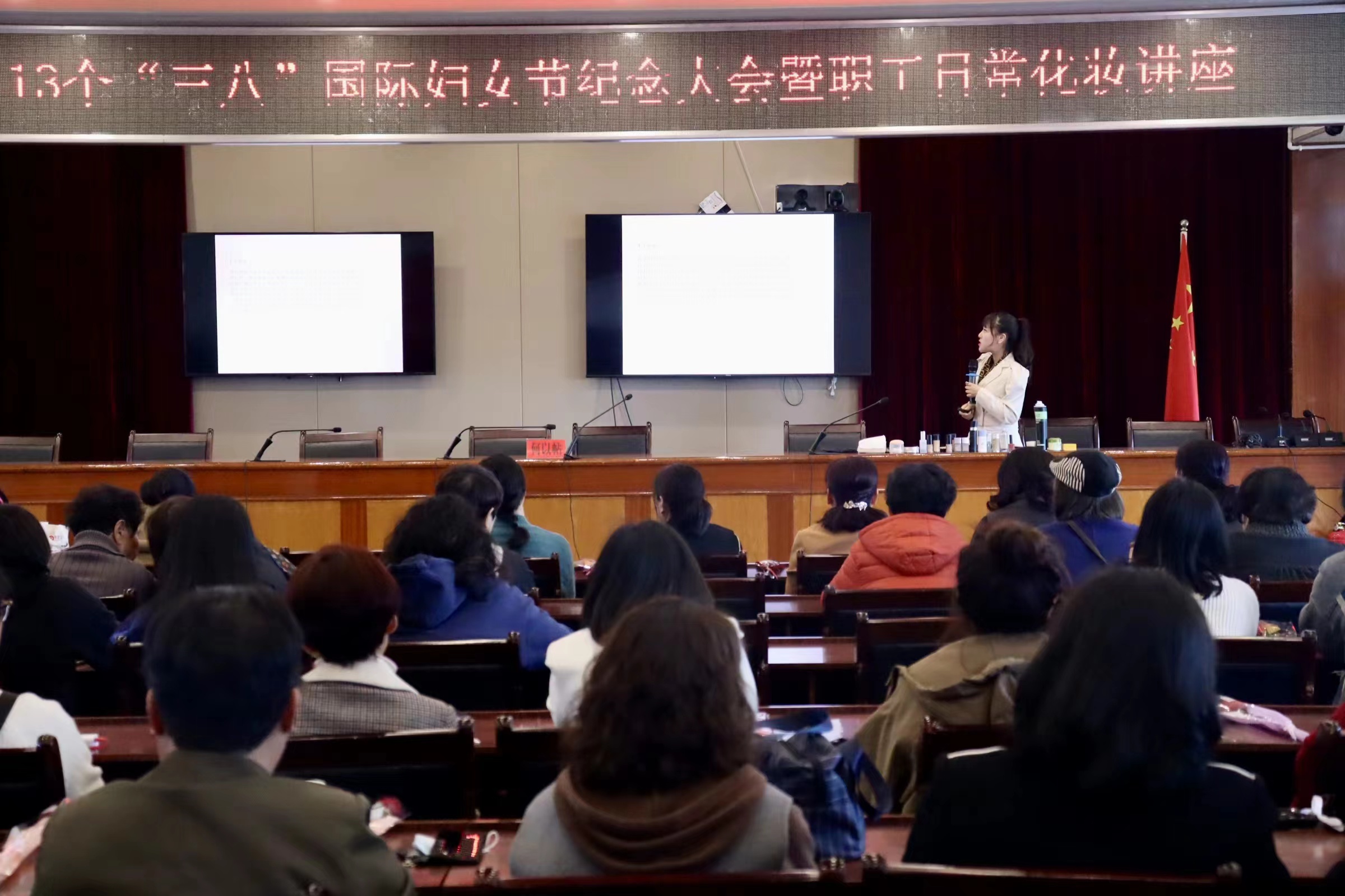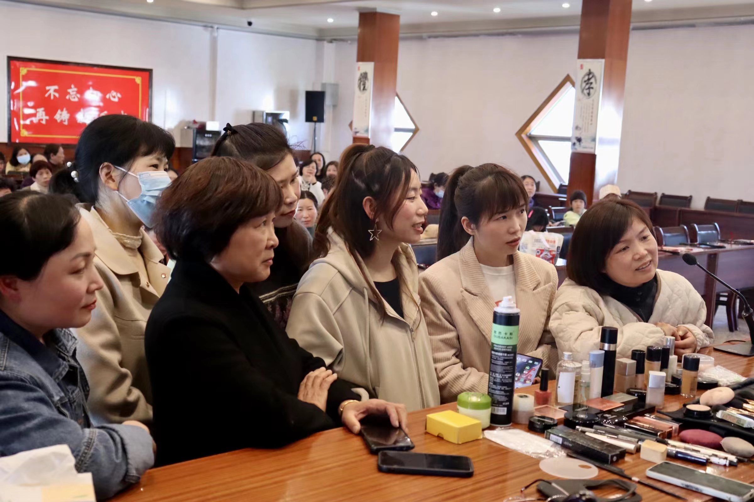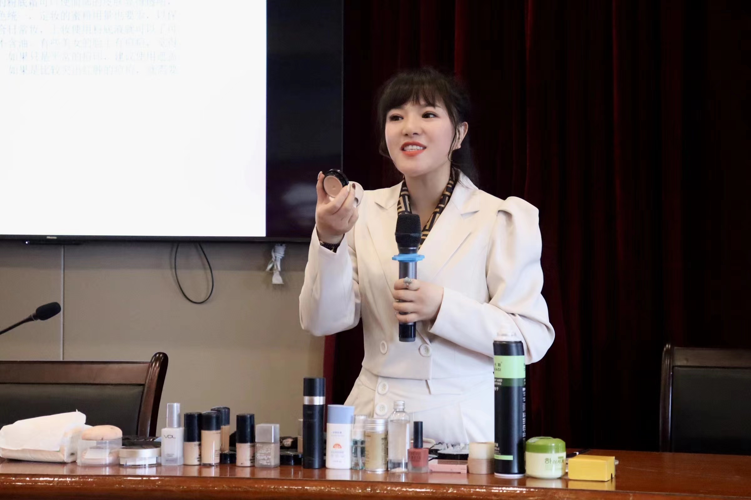 2023年3.8女神節(jié) 陽洋化妝職業(yè)培訓(xùn)學(xué)校很榮幸受樂成街道的邀請 由學(xué)校創(chuàng)始人楊娜娜為機(jī)關(guān)單位女性同胞授課——自我化妝班 開展公益化妝講座,再次感謝總工會的邀請