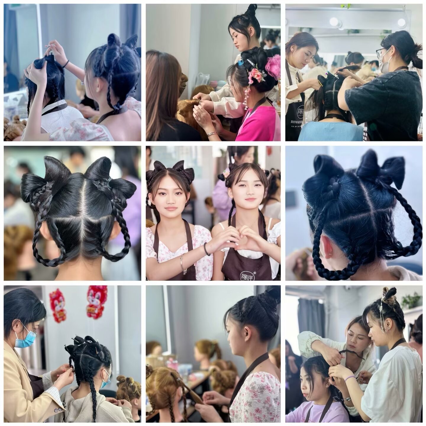 發(fā)型班的教學(xué)從簡單到難,老師帶領(lǐng)著大家一步步進(jìn)步起來,從一開始簡單的三股辮到現(xiàn)在千變?nèi)f化的各種造型,成長肉眼可見,這邊是學(xué)習(xí)的好處。