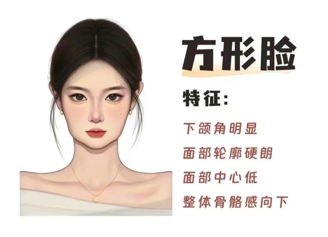 視覺印象:理論感、氣場感、氣質、大方、高級感 整體造型建議:多采用一些色彩鮮艷的,服裝剪裁帶有利落感的衣服,整體氣質高級。也可以去考慮帶點潮酷感的少嘗試少女類風格 臉型修飾:方臉需要在臉周大面積修容從太陽穴到下頜骨的部分都需要少量多次進行暈染,高光則掃在山根/眼下/下巴,視覺上拉長臉型 避免:可愛的、娃娃領、泡泡袖等元素設計服裝