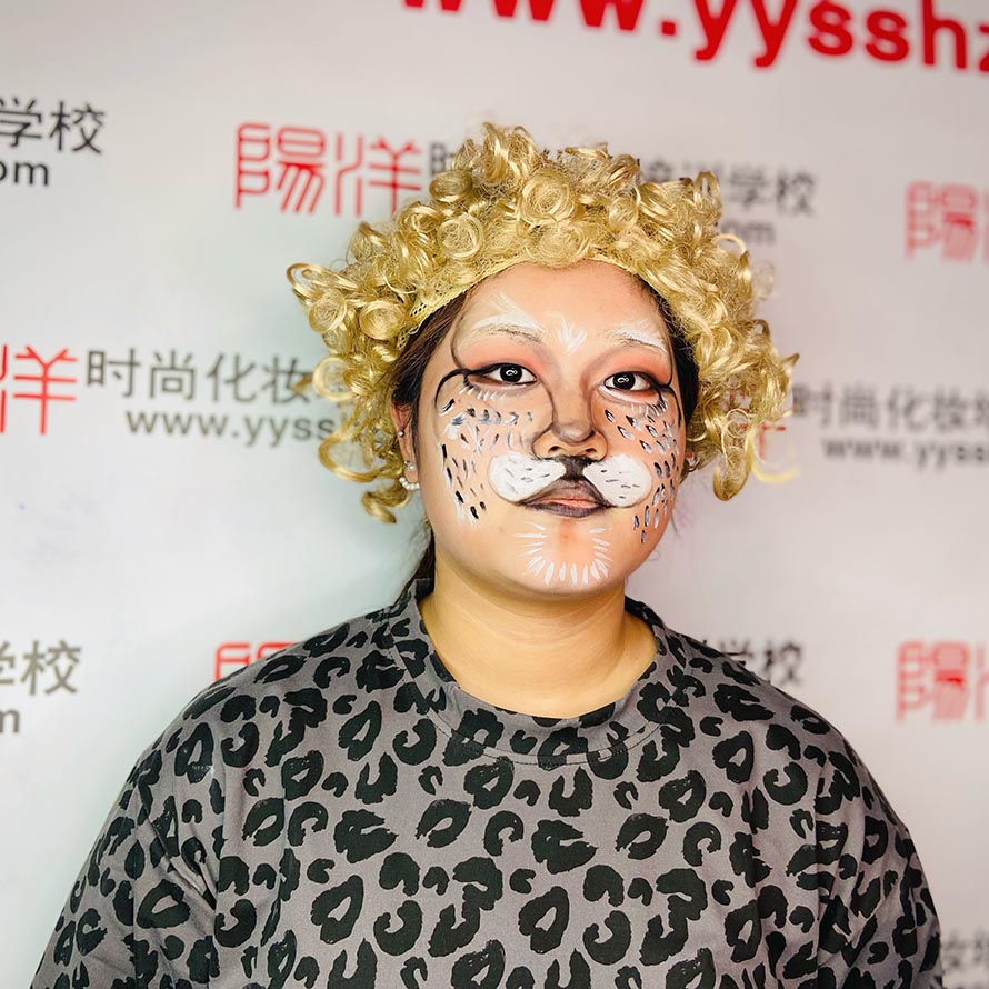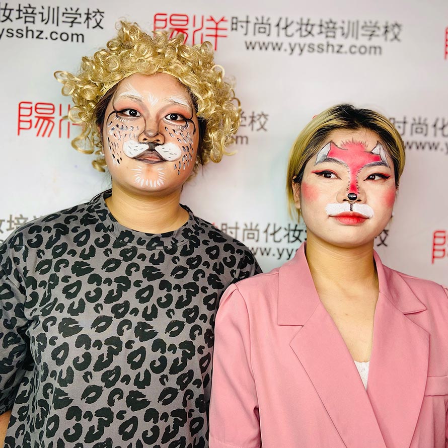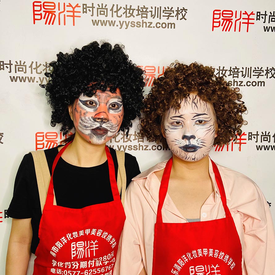 這兩位同學(xué)是根據(jù)老虎的形態(tài)來(lái)完成的一個(gè)動(dòng)物妝 第一次從零基礎(chǔ)化完成這樣的妝容,雖然不是特別的完美, 但是對(duì)于她們來(lái)說(shuō)也是很不錯(cuò)了!