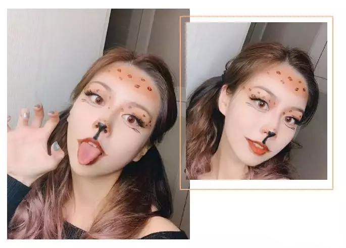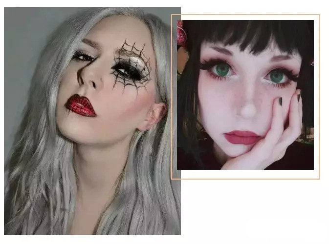 還有這種局部自由發(fā)揮 比較有特色的創(chuàng)意妝容 左邊有蝙蝠元素,右邊的雀斑元素 都很有特點(diǎn),美